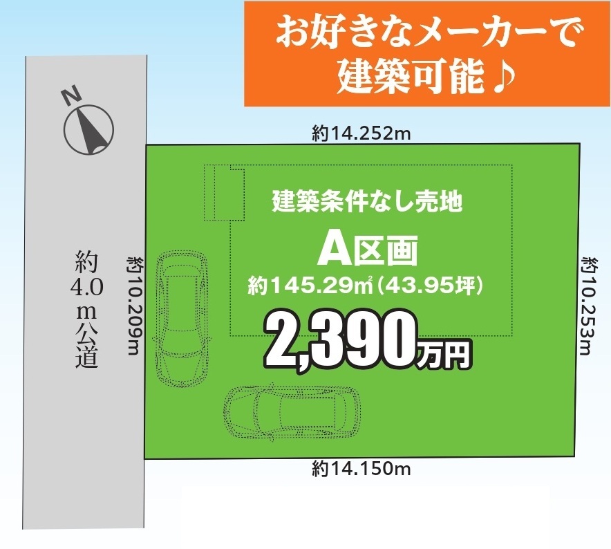 建築条件なしのためお好きなハウスメーカーで建築できます。